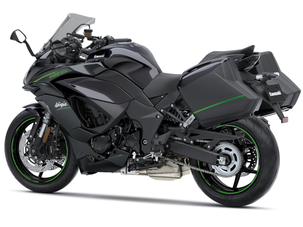 Stylistyka, która podkreśla wizerunek rodziny Ninja 1100SX i sportowy potencjał jazdy, obejmuje opływowe owiewki i jednostronny tłumik.