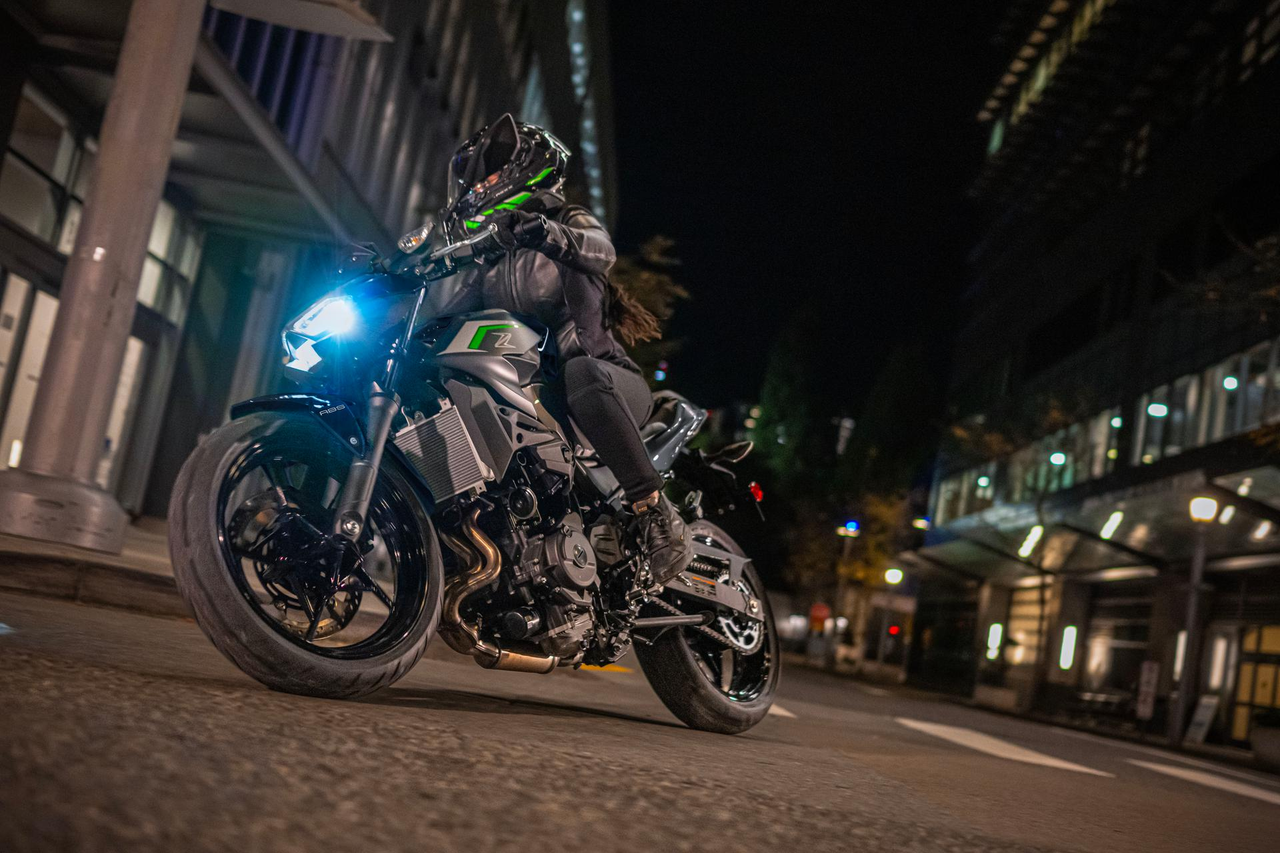 Bez względu na to, pod jakim kątem Z500 jest widziany, jego potrójny przód z reflektorami i agresywne linie jasno pokazują, że jest to członek rodziny Z, z dynamicznym wyglądem Supernaked i doskonałą prezencją na ulicy.