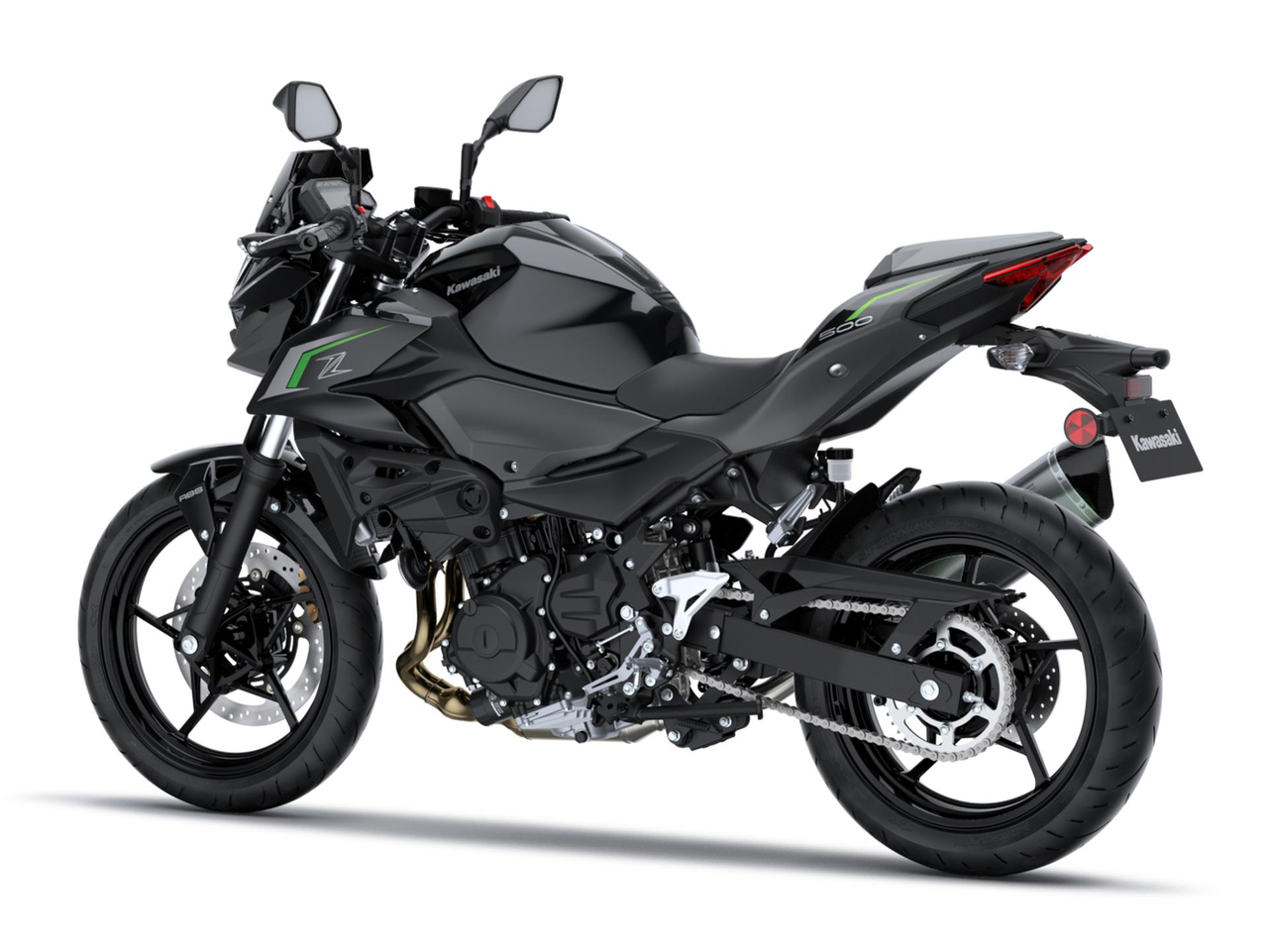Bez względu na to, pod jakim kątem Z500 jest widziany, jego potrójny przód z reflektorami i agresywne linie jasno pokazują, że jest to członek rodziny Z, z dynamicznym wyglądem Supernaked i doskonałą prezencją na ulicy.