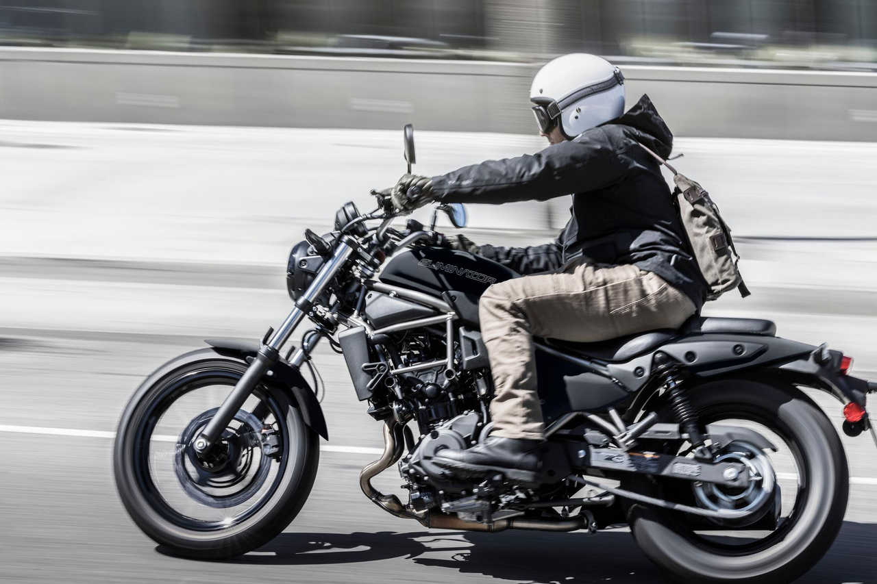 Uzupełniając przyjazny dla kierowcy charakter, który wywoła uśmiech na twarzach kierowców, którzy chcą cieszyć się radością oferowaną przez motocykl Kawasaki, Eliminator jest wspierany przez aktywne osiągi pochodzące z silnika opartego na Ninja i lekkiej ramy kratownicowej.