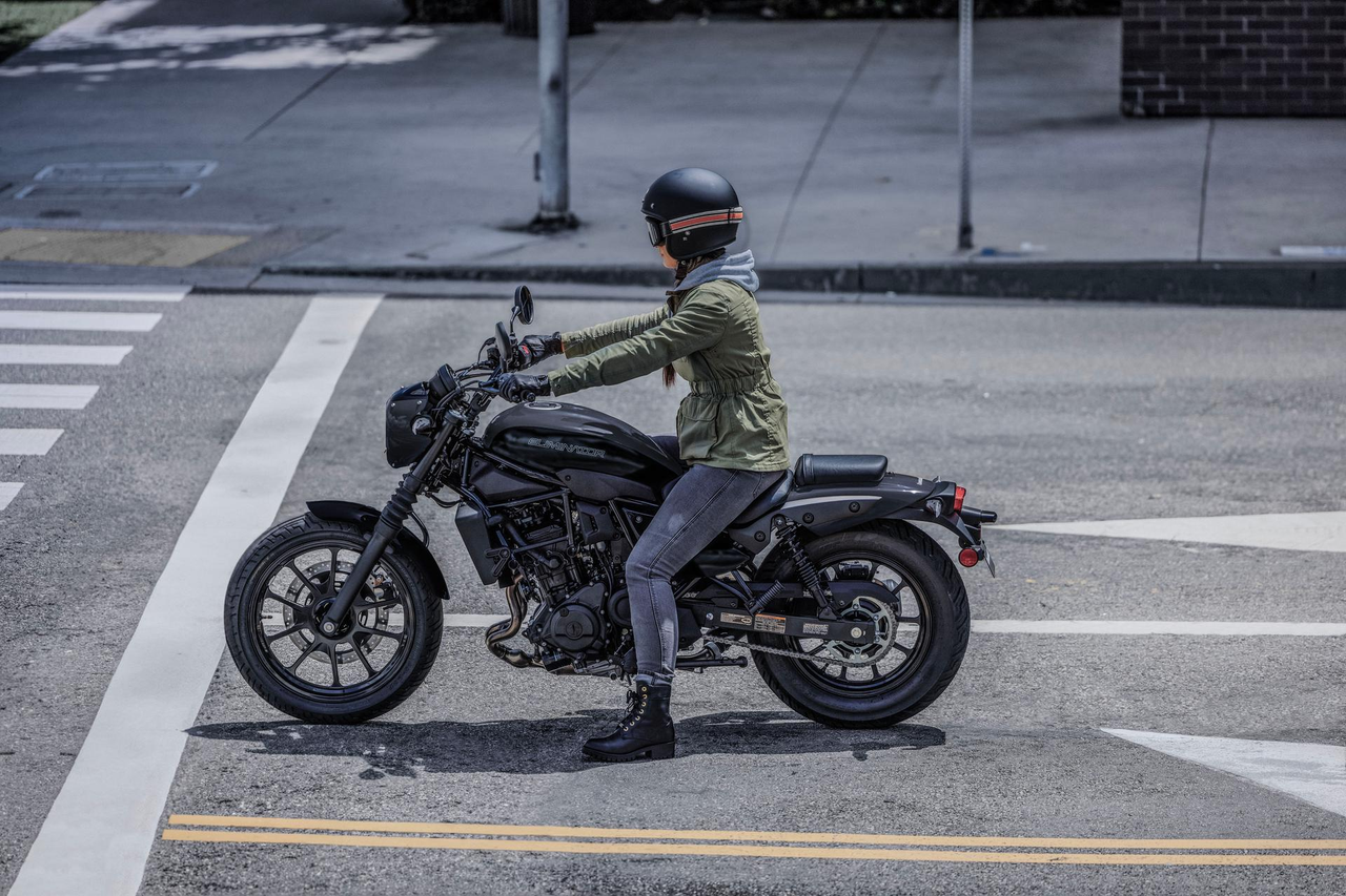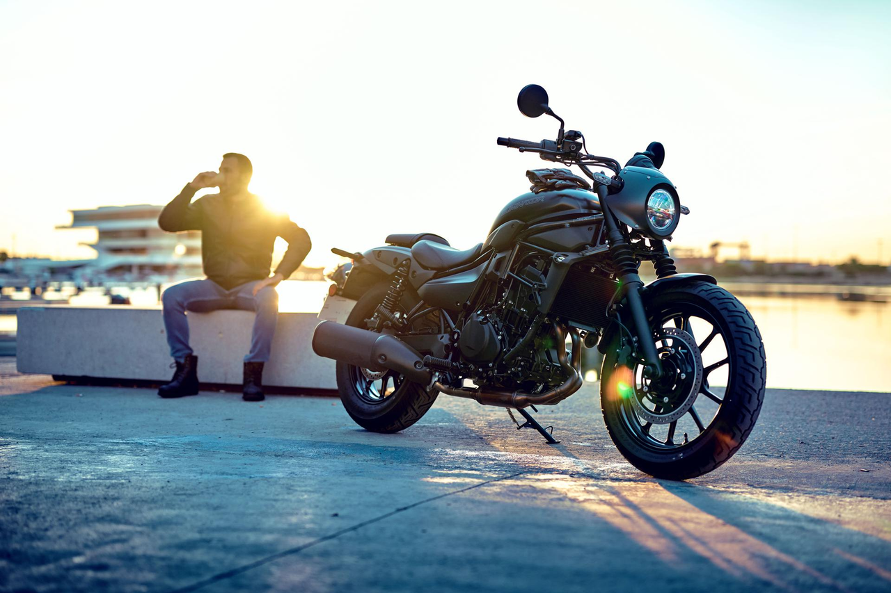 Gdy wzywa Cię ulica, odpowiedz zupełnie nowym Eliminatorem 500. Ten motocykl wstrząsa przyjętymi konwencjami dzięki eleganckiej i niskiej konstrukcji, niskiemu i wygodnemu siedzisku oraz łatwości prowadzenia, co czyni go najbardziej przystępnym cruiserem Kawasaki. Nie zastanawiaj się zbyt długo, ponadczasowy design został połączony z nowoczesną technologią, dzięki czemu możesz po prostu jeździć.