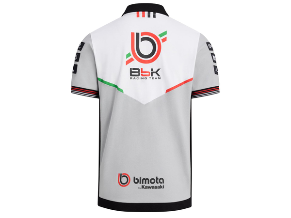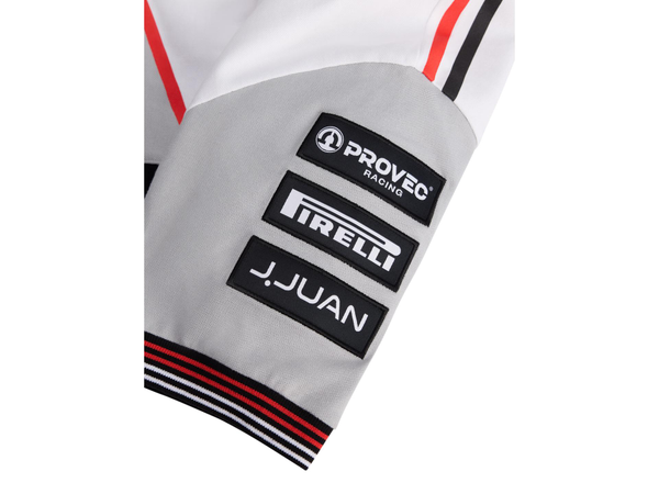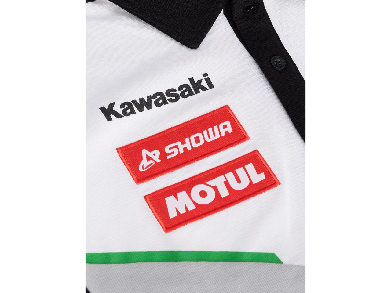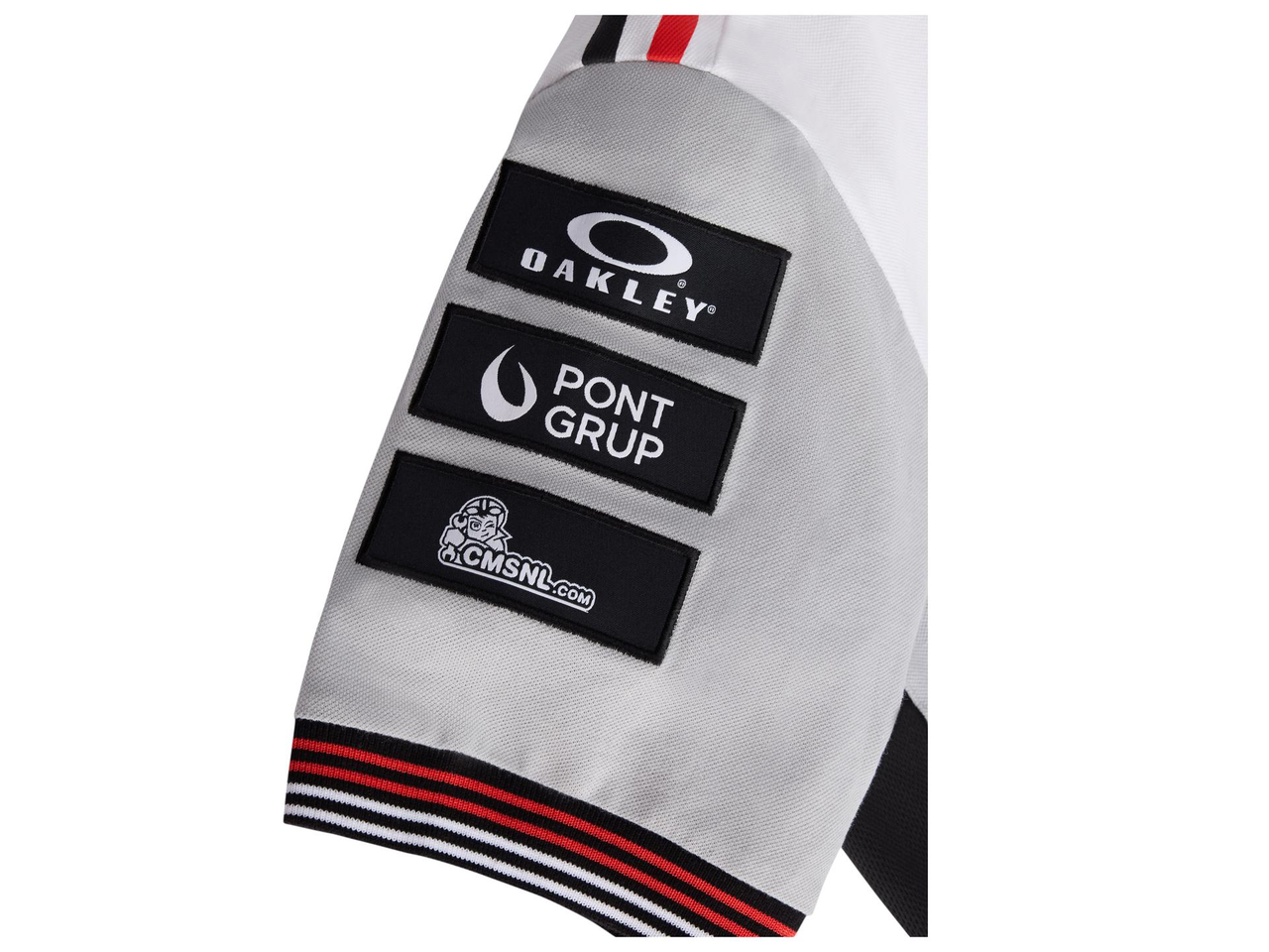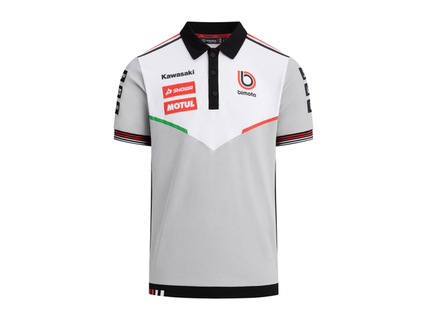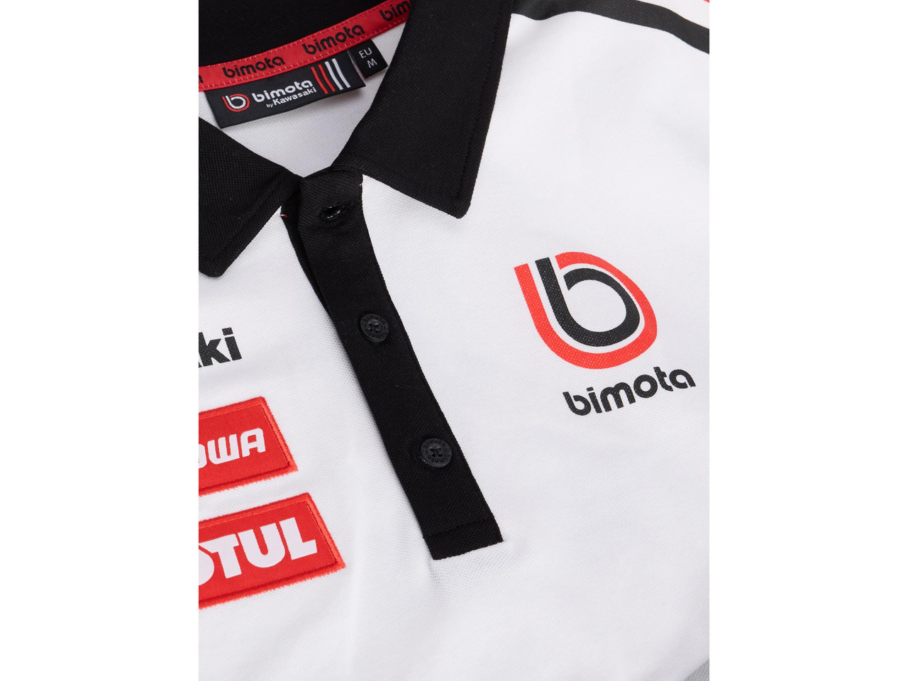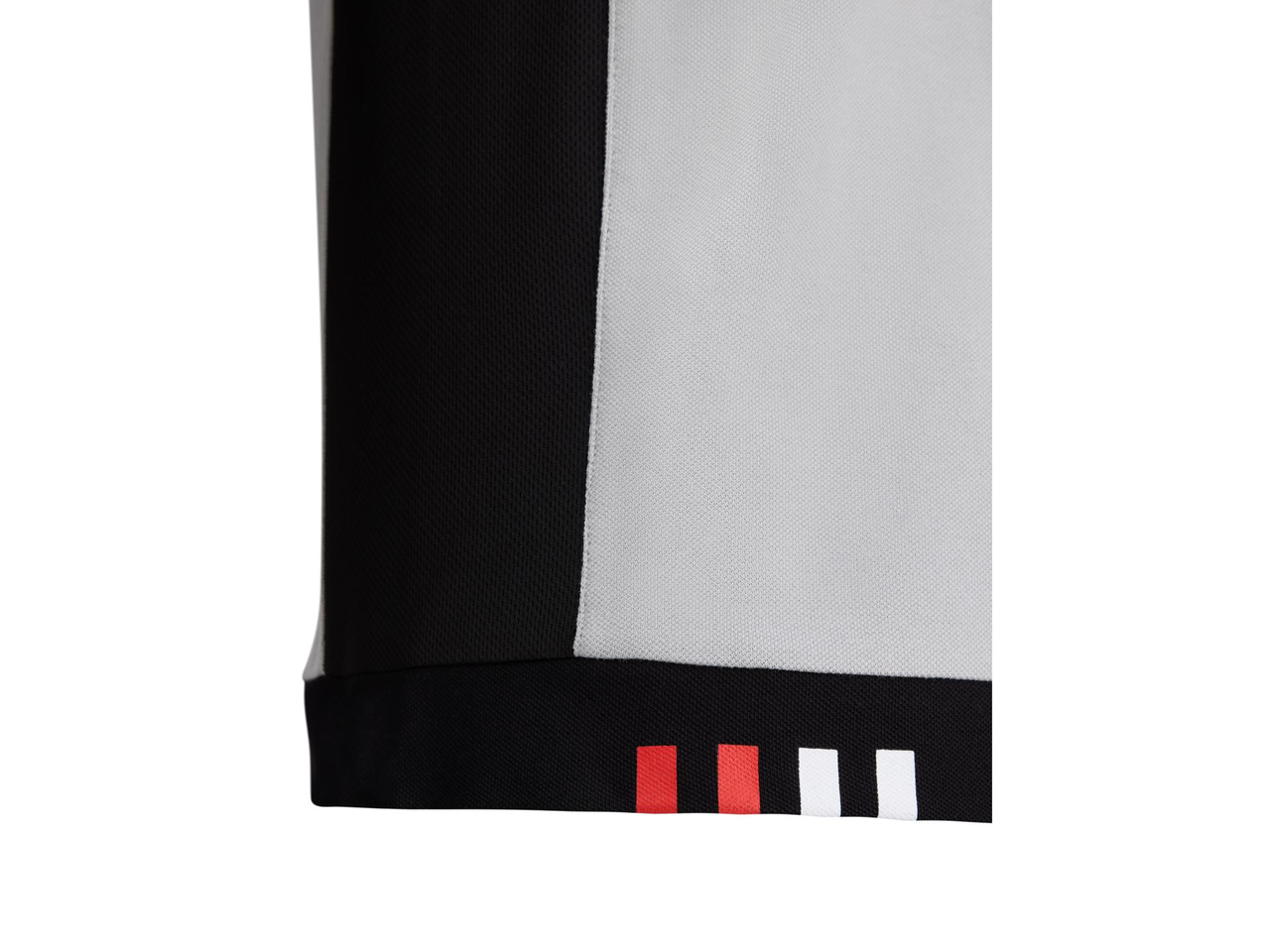 Koszulka polo z krótkim rękawem i mankietami wykończonymi czerwono-białym ściągaczem. Zapięcie na trzy guziki.