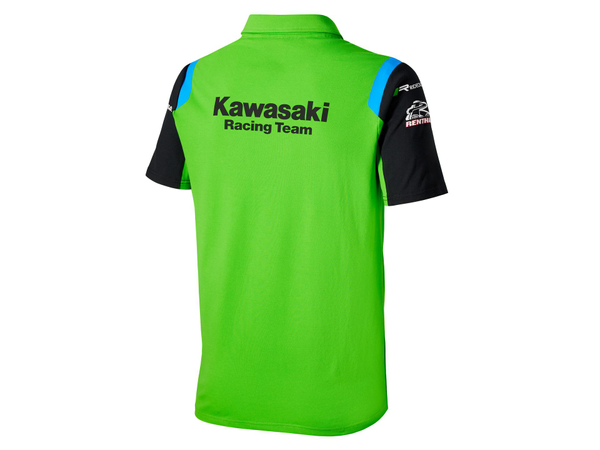 Koszulka polo z krótkim rękawem w barwach zespołu Kawasaki MXGP, z 3-guzikowym zapięciem pod szyją oraz kołnierzykiem z tego samego materiału