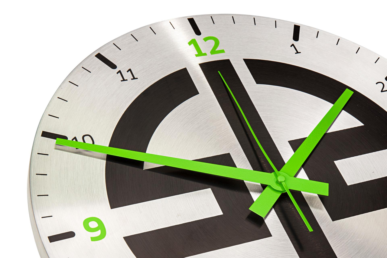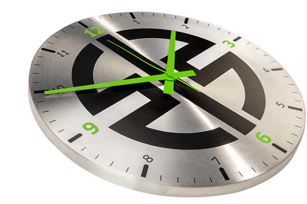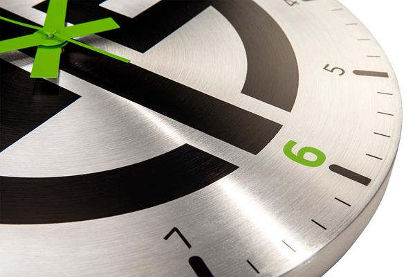 Pilnuj czasu dzięki temu zegarowi ściennemu z logiem Rivermark. Produkt wykonany ze szczotkowanego aluminium. Zegar charakteryzuje się płynnym ruchem wskazówek. Zegar wymaga baterii AA 1,5V (do oddzielnego zakupu).