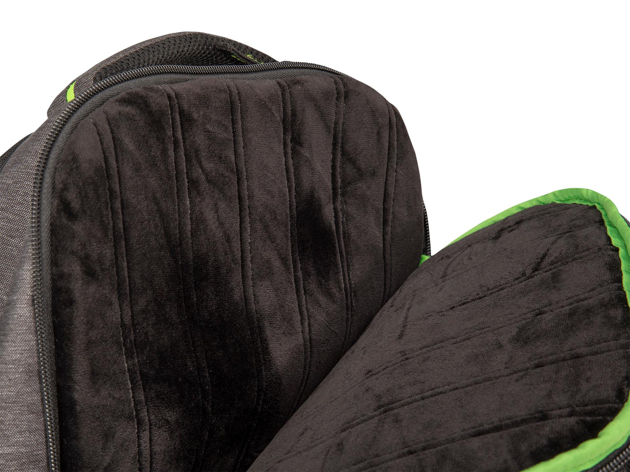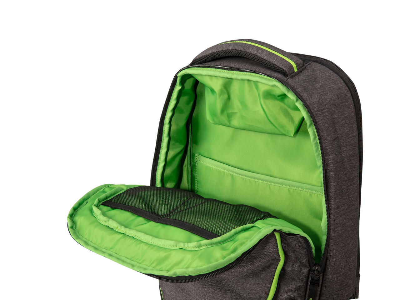 dedykowaną, wyściełaną kieszeń na laptopa 15" z bocznym zamkiem dla łatwego dostępu, kieszeń na tablet w głównej komorze, wyściełane plecy z trzema pasami zwiększającymi komfort, pasy naramienne z podwójnym wzmocnieniem dla lepszej stabilności i wygody, kieszenie na zamek na wartościowe przedmioty i ważne dokumenty.