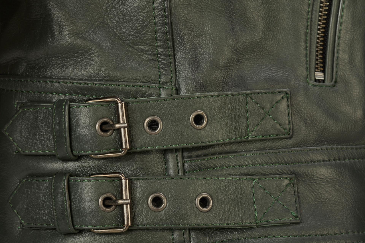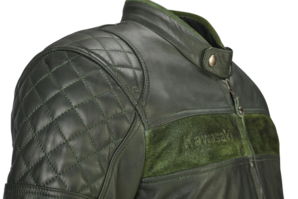Oliwkowa skórzana kurtka London w stylu vintage z pewnością przypadnie do gustu właścicielom klasycznych modeli motocykli Kawasaki. Wykonana ze skóry bydlęcej kurtka oferuje najlepszą odporność na ścieranie i posiada protektor ramion i łokci (CE 1), by zminimalizować skutki ewentualnego uderzenia. Co więcej, pikowane detale w romby na ramionach i dolnych partiach rękawów w połączeniu z dwukolorową skórą na piersi dodatkowo wspierają estetykę retro. Warto wspomnieć także o miękkim i elastycznym kołnierzu i zwijanych skórzanych mankietach, które pomagają zmniejszyć podrażnienia wokół tych obszarów podczas jazdy na dłuższych dystansach. Świetnym uzupełnieniem dla kurtki London są skórzane rękawice Bristol.