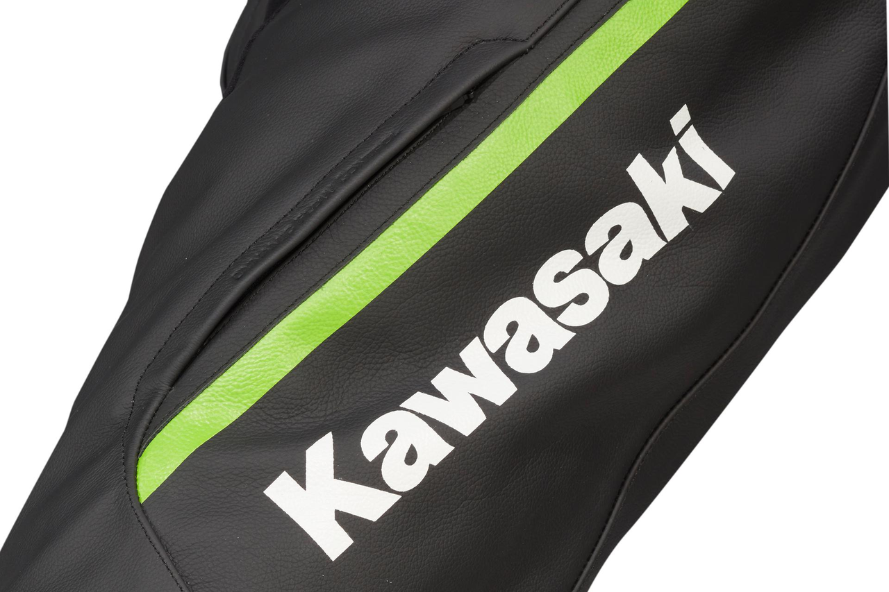 Męskie spodnie motocyklowe Pisa marki Kawasaki stworzone zostały przy współpracą z firmą Alpinestars. Wykonane są z wysokiej jakości skóry bydlęcej o grubości 1,3 mm. Dzięki nowo opracowanemu, precyzyjnie dopasowanemu projektowi i strategicznie rozmieszczonym wlotom powietrza zapinanym na zamek, skórzane spodnie Pisa zapewniają ścisłe dopasowanie z dużą ilością rozciągliwości przy ruchach motocyklisty. Wyposażone w wygodną obudowę ze skóry premium i ergonomiczne, elastyczne panele, spodnie skórzane Pisa z certyfikatem CE oferują wiodącą w swojej klasie ochronę wewnątrz i na zewnątrz, możliwość ulepszenia do Alpinestars Nucleon Hip Protection, a także wzmocnione panele pośladków i kolan.
