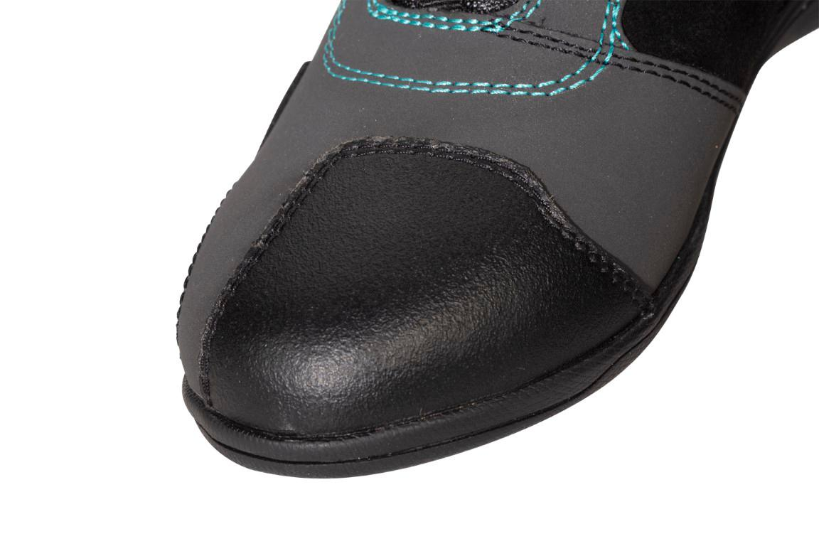 Damskie buty motocyklowe Toulon z charakterystycznym dla klasycznych sneakersów kształtem wyprodukowane w kooperacji marek RST i Kawasaki. Model ten posiada bardziej płaską podeszwę, co znacznie ułatwia chodzenie. Wykonane z wytrzymałej mikrofibry i wzmocnione tkaniną balistyczną obuwie ma zintegrowaną ochronę pięty i kostki, ale także gumowaną podkładkę zmiany biegów, co zwiększa komfort użytkowania.