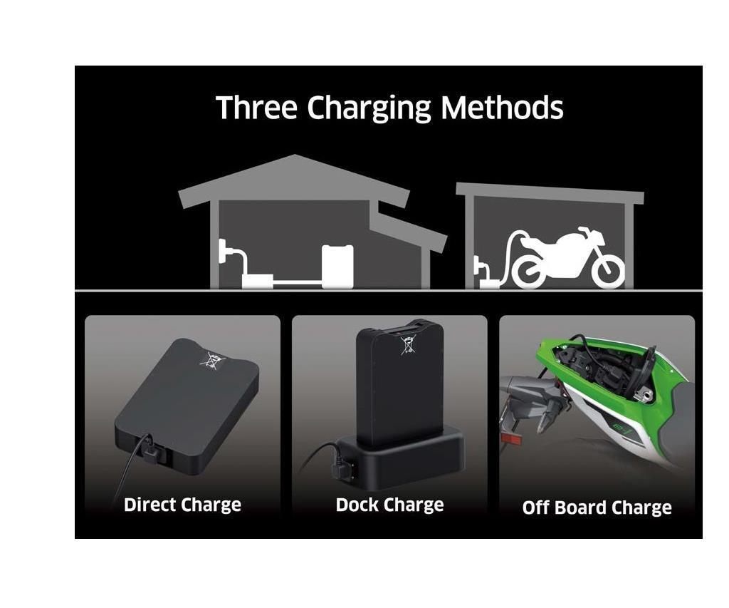 Po podłączeniu do motocykla za pomocą zestawu kabla do ładowania, jedna ładowarka może ładować oba akumulatory w tym samym czasie dzięki systemowi zarządzania akumulatorem.