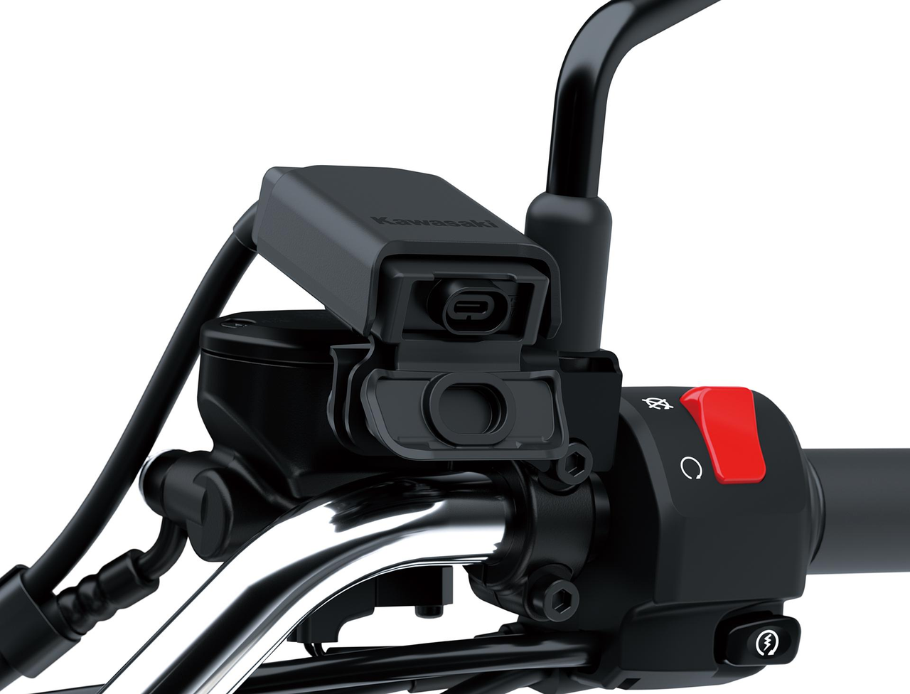 Gniazd USB umożliwia ładowanie urządzeń USB podczas jazdy. Montowane bezpośrednio do kierownicy. Wejście 12 V z portem wyjściowym 5 V - 3 A. Zalecana instalacja przez dealera.