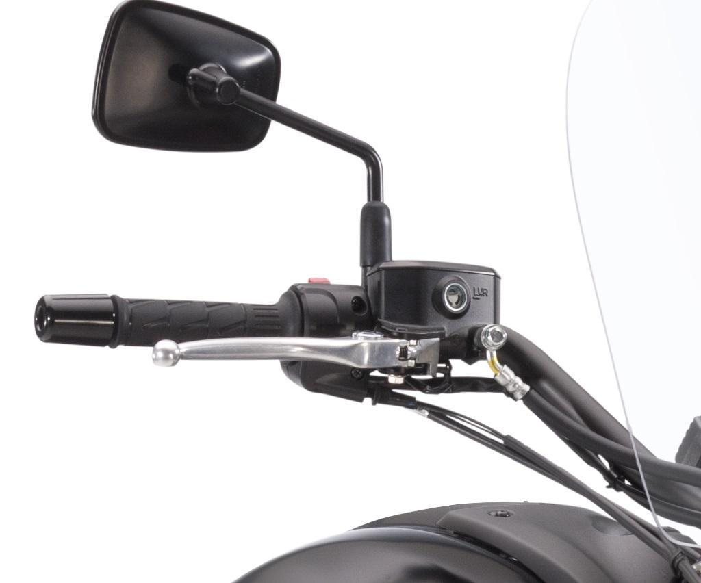 Czarna kierownica w stylu Fatbar z końcówkami ustawionymi bliżej środka. Dzięki konstrukcji Easy-Reach kierownica znajduje się 36 mm bliżej kierowcy, co poprawia komfort i kontrolę. W zestawie: opaski kablowe i śruby montażowe.