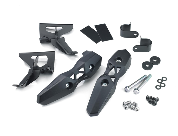 Osłony na silnik i ramę chronią Twój motocykl, ale nie gwarantują zabezpieczenia wobec wszystkich rodzajów uszkodzeń. Zwiększają ochronę motocykla w momencie upadku. Proces montażu jest bardzo szybki oraz prosty.