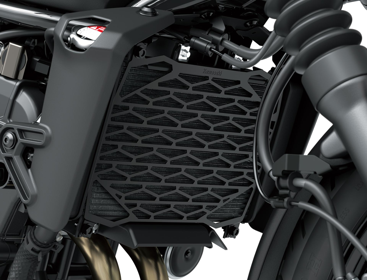 Czarna osłona pomaga chronić chłodnicę przed zanieczyszczeniami drogowymi. Stylowy, laserowo wycinany wzór zapewnia maksymalny przepływ powietrza przy minimalnej wadze.