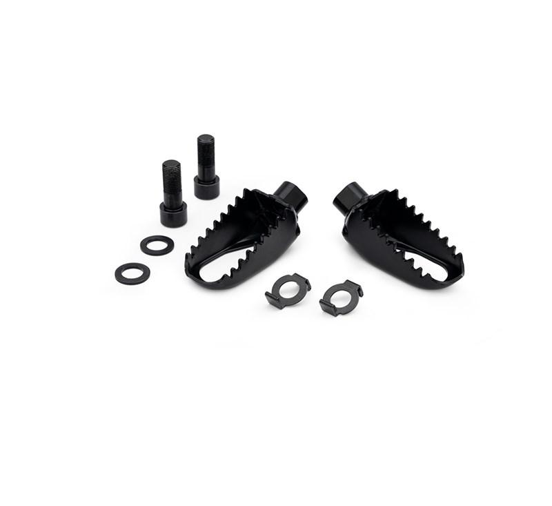 Akcesoryjne, stalowe podnóżki w stylu motocrossowym w kolorze czarnym, zastępujące standardowe „rowerowe” podnóżki w modelu Elektrode. Podwyższone zęby zapewniają lepszą przyczepność i maksymalną kontrolę nad motocyklem.